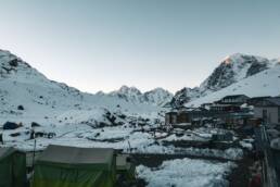 標高4940mにあるロブチェの山小屋。山に囲まれた窪地にあり、ずっと日陰にある印象だ。